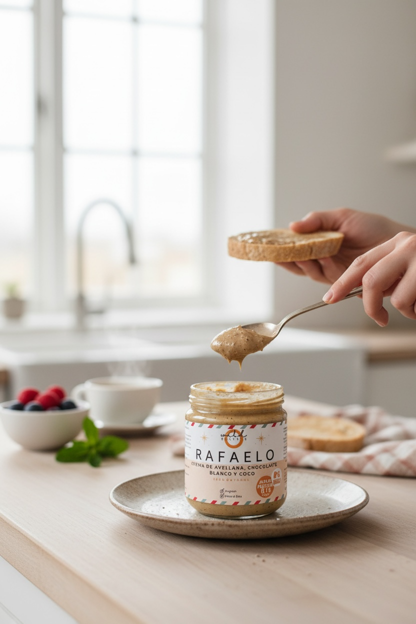 RAFAELO - Crema de Avellanas, Chocolate Blanco (sin azúcar) y coco rallado 100% natural